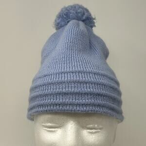 Vintage Wigwam Wool Pom Pom Beanie Toque Winter Hat Blue 90s Skiing Skier USA