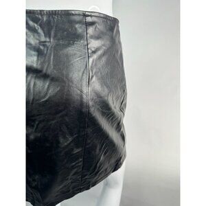 Vintage Wild Blue Faux Leather Button-Front Mini Skirt Black Size M Women's