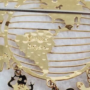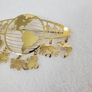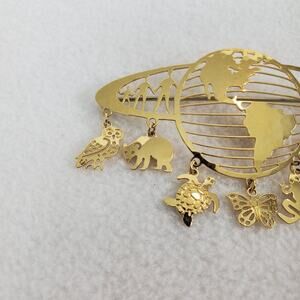 Vintage Wild Bryde Brooch Gold Tone World Earth Animal Dangle Lightweight