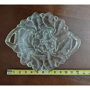 Vintage Wild Rose Platter w/2 Handles Indiana Glass Co. Clear Pressed Glass