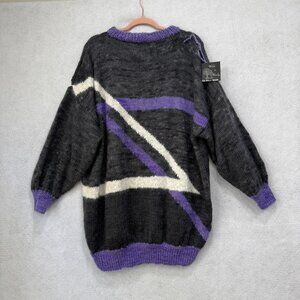 Vintage Wild n Wooly Sweater Womens Extra Large Black Purple Mohair Angora Knit 90s