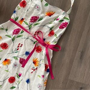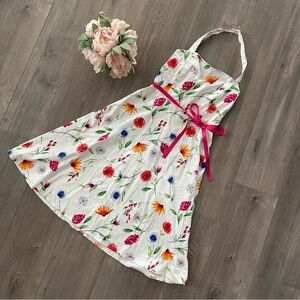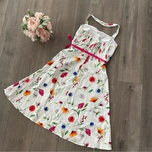 Vintage Wildflower Florals White Pink Ribbon Belt Midi Halter Dress