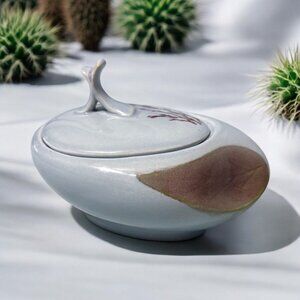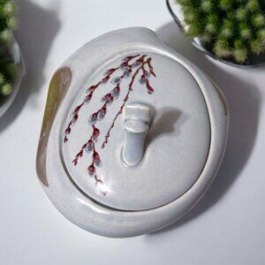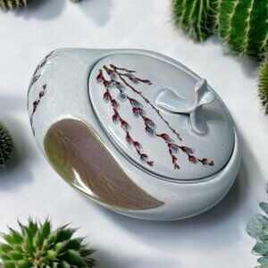FEATURES: Oval shaped sugar dish with lid, features images of Willow Buds and Branches / signed on bottom: Willard George / see photos for more details
