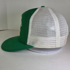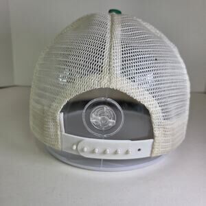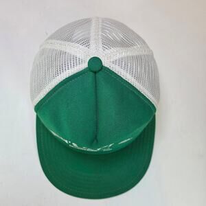 This is a vintage Willey’s Sport Shop snapback trucker hat from McGregor, Minnesota. Featuring a bold jumping fish graphic and classic 1980s foam front design, this hat is a true piece of fishing and sporting history. The hat has a green foam front panel with white mesh backing and adjustable snapback closure. Made in the USA and one size fits all. Foam rot is present inside, which is common in hats of this era, and some light discoloration on the mesh is visible. Still displays well and perfect for collectors, fishing enthusiasts, or lovers of retro trucker caps.