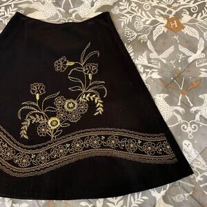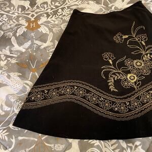 Details: cottagecore fairycore kitsche midi skirt fit & flare high rise embroidered flowers beaded bohemian 1990s vintage high quality medium weight cocktail party evening GORGEOUS!!!!!! Swing western