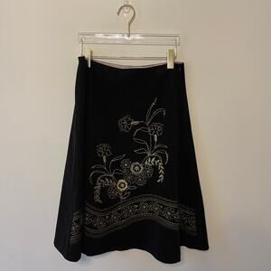 Vintage Willi Smith 8 midi skirt beaded floral corduroy 90s bohemian black gold