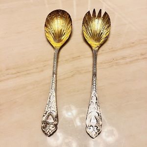 Vintage William Adams Sheffield England Silver Plate Gold Wash Serving Spoon Set