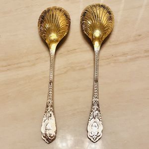 Vintage Silver Plated Gold Wash Ornate Design Set of 2 Serving Spoons, Makers mark reads "W A EPNS Made in Sheffield England". Excellent condition.