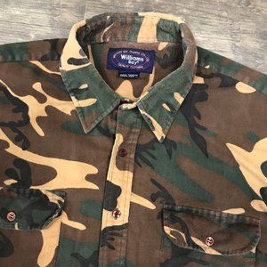 VINTAGE WILLIAMS BAY CAMO BUTTON FRONT SHIRTMEN SIZE XL