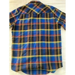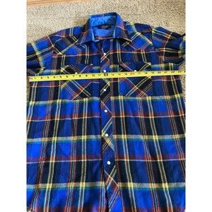 Has all buttons and no holes or rips. Pearl snap closure. In excellent condition. Colors; Royal blue, yellow, red, teal
