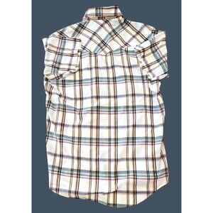 This shirt offers a classic plaid design and pearl snap style, suitable for professional or casual settings. Its cotton-polyester blend ensures comfort and durability.