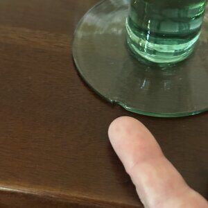 One glass has a small chip on the base which is reflected in the price. See pictures.