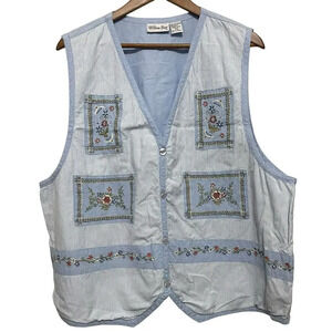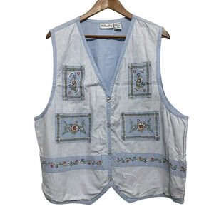 Vintage Willow Bay Blue Floral Embroidered Button Front Vest Cottagecore Size 2X