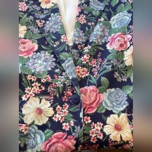 excellent preowned condition Vintage Willow Ridge Floral Denim Jean Blazer Size 12 100% Cotton Union Made in the Usa.