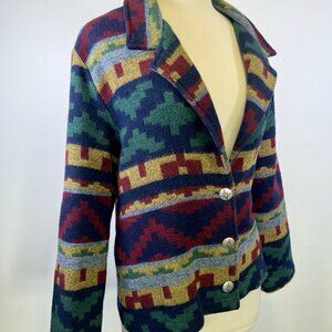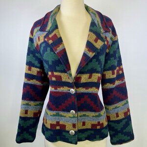 Vintage Willow Ridge Southwestern Aztec Western Wool Blend Jacket Size 14 Petite