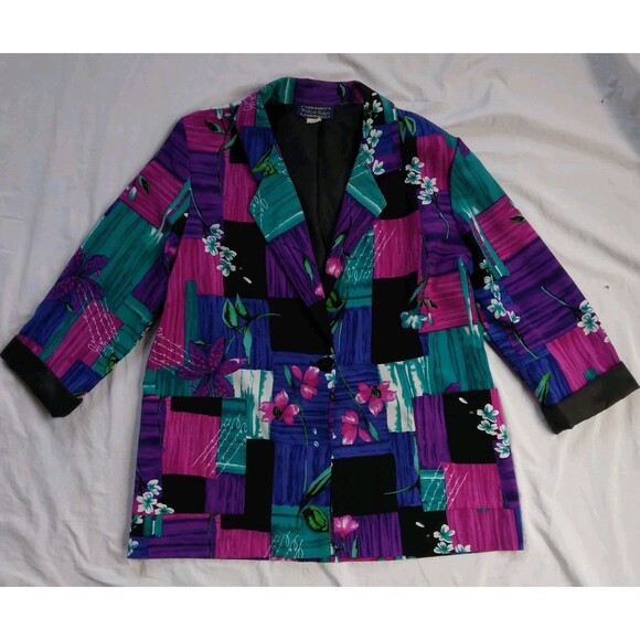 Vintage Willow Ridge Womens Blazer Blue Purple Floral Button Front Retro Large.