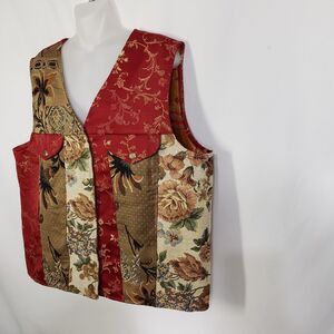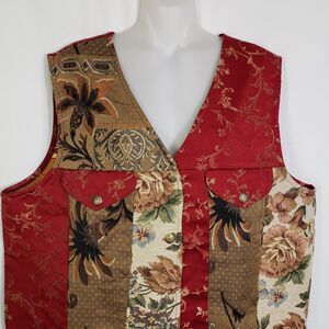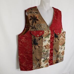 Vintage Willow Ridge Womens Vest Size 1X Button V Neck Patchwork Floral Pockets