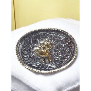 Vintage Wilmarth E. Providence RI belt buckle featuring a couple square dancing