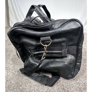 Vintage Wilson Black Leather Sports Duffle Bag w Shoulder Strap 70s 80s EUC