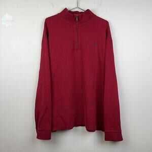 Classic maroon crewneck sweatshirt by Wilson, men’s size Large. Made from a 50/50 cotton-polyester blend. Assembled in Mexico from U.S. fabric. Features ribbed cuffs, hem, and collar. Tag shows light fraying (see photo), otherwise in great pre-owned condition with no major flaws. Timeless athletic fit and simple design.