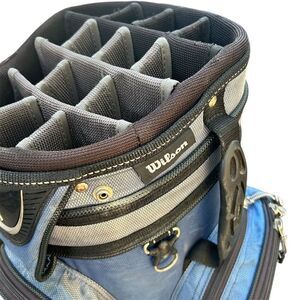 Elevate your golf game with this vintage Wilson golf bag designed for the avid golfer who values style and functionality. Featuring a 14-way divider for organized clubs, ample storage for essentials, and NFL branding for team spirit. This pre-owned item is in excellent condition, ready to enhance your golfing experience.