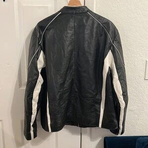 Vintage Wilsons Black White Striped Leather Cafe Racer Motorcycle Jacket Mens XL