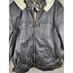 Good pre owned condition. Seams all have have a manufactured patina. The back has a couple of light scratches in the leather shown in the photos. Otherwise very clean with no rips or stains. Heavy Jacket. Please check measurements to ensure fit.