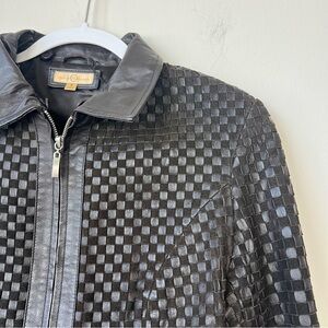 Vintage Wilson’s Leather Basket Weave Woven Leather Jacket Dark Brown