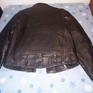 Nice jacket, heavy, not sure why anyone would do this but they cut the Epaulets off the shoulders. Does not look real bad. I did not notice til I started taking pictures. Old Skool California Highway Patrol Police style jacket. Has the extra lining zippered on the inside that you can remove. Lots of zippered pockets. Belt loops but no belt. Size tag reads S. Might be a little larger, check measurements. Measures 18"s across the chest armpit to armpit. Sleeves are 24"s. 26"S from top of collar to waist. I have about 200 jackets like this, been collecting them for years. Time to unload. If this is not your size or style let me know, I may have something of interest to you that I can list. I have a few cafe racers, Bomber jackets, Nylon crotch rocket motorcycles jackets, a nice selection.