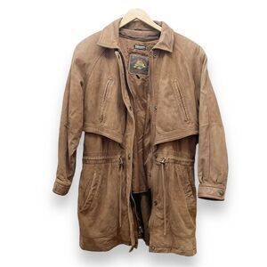 Vintage Wilsons Leather Brown Leather Adventure Bound Anorak Coat Size Medium