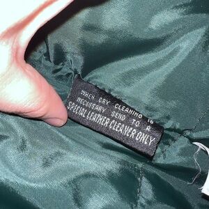 This vintage Wilsons Leather coat is a stylish dark green suede parka with a hood, combining classic style with cozy comfort. Made from 100% genuine leather, this coat is lined with nylon and features a polyester-filled interior, making it perfect for chilly weather.