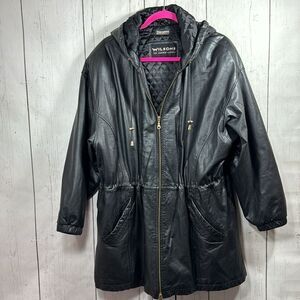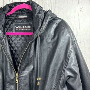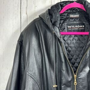 Vintage Wilsons Leather Hooded Black Jacket 90s Thinsulate Insulated Parka Retro