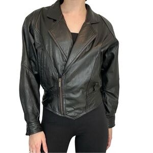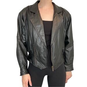 Vintage Wilson’s Leather Jacket 80s Fitted Bomber Black Size Extra Small