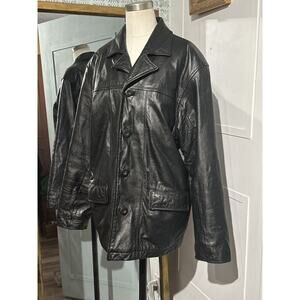 Vintage Wilsons Leather Jacket Button Front Pockets Black Coat Small