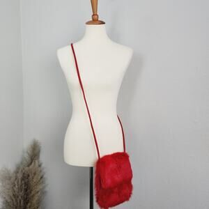 Wilsons Leather Vintage Bag Rabbit Fur Fuzzy Purse Mini Bag Crossbody Bag Red Bag Y2K 90sFashion Grunge Style Shoulder Bag Plush Statement Bag Festival Bag Rare Find