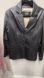 Sleek black leather jacket by Wilsons Leather. Timeless design with button closure. Perfect for versatile styling.