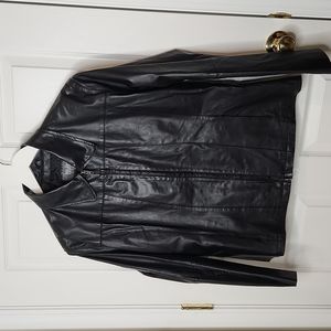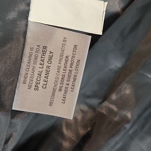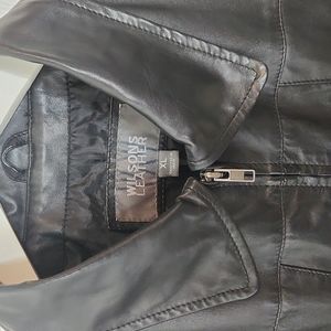 Vintage Wilsons Leather black leather jacket, fully lined, fitted, and lightweight. Two front side open pockets measuring approximately 5" x 4.25". Women's size XL. Used. Only worn a few times, minor scuffs, no holes. See pics for any wear. Approximate measurements: P2P 23.5", waist 20", hem 23.5", length 24", shoulder to shoulder 18.5", sleeves 24", 21.5" front zipper.