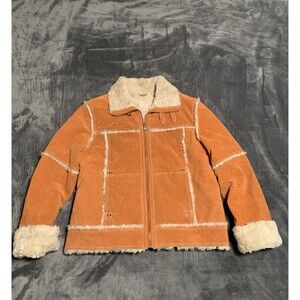 Vintage Wilsons Maxima Women Jacket XL Orange Zip Front Faux Fur Penny Lane Flaw