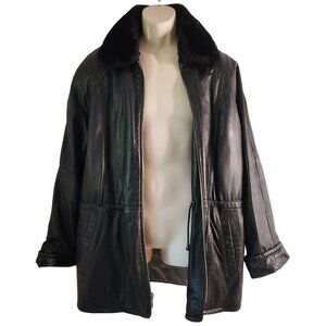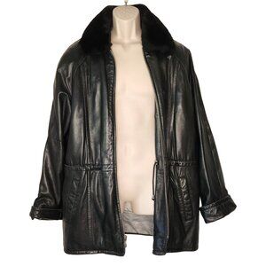 Vintage Wilsons Mens Jacket Pelle Studio Leather Faux Fur Collar Black Large XL