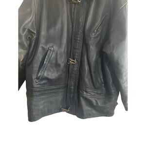 Vintage Wilsons Mens Large Leather Distressed Black Coat Jacket Zip Metal Toggle