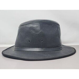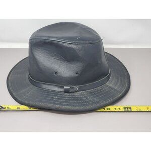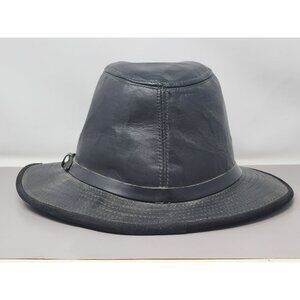 Vintage Wilsons SZ Large Black Leather Safari Hat Made In USA