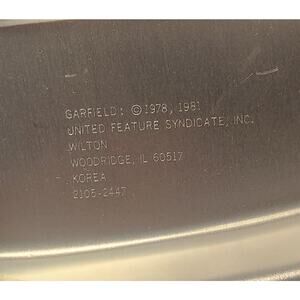 This aluminum Wilton cake pan features Garfield celebrating with a birthday cake. Perfect for parties, collectors, or kitchen décor.