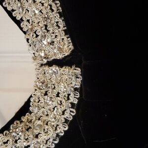 Black Velvet Dress with silver braid on neckline and hem. NWT
