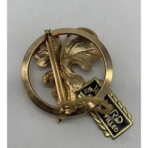 This vintage Winard brooch is a stunning piece of jewelry that will add a touch of elegance to any outfit. The brooch features a beautiful leaf shape that is filled with 12 KT gold and adorned with a lustrous cultured pearl. The pearl is white in color and has a charming hang tag that adds to the overall design of the brooch.