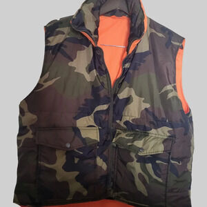 Vintage Winchester Mens L Reversible Camouflage Hunting Puffer Vest Jacket