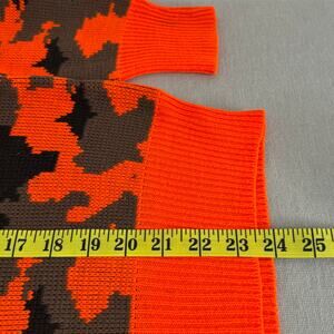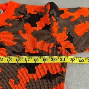 Vintage Winchester Orange Camo sweater. 100% acrylic. Ribbed hem and cuffs. A few pulls in fabric.