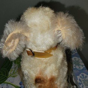 Circa 1960's wind up mechanical back-flipping dog toy. When wound up the dog does a back-flip. He starts the back-flip, but never makes it right side up. Maker unknown. Approx. 5 3/4" H x 5" L x 4 1/2" W. Item shows signs of dirt/soil. Holes in material at the ends of both hind legs. Please see photos and video for condition, wear and tear of item. Has been in a display cabinet for decades. Smoke free home.