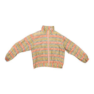 Vintage Windbreaker Bomber EVA Jacket Sz Large 100% Silk Pink Brown Abstract
