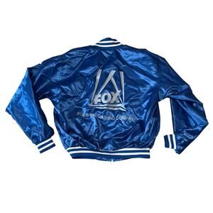 Vintage Windless FOX 26 News Satin Bomber Jacket in Royal Blue Size Medium