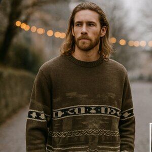 This vintage Windridge sweater is the perfect blend of comfort, classic design & hard-to-find sizing. Featuring a rich earthy palette with a traditional winter knit motif, this piece delivers that sought-after Quiet Luxury meets Vintage Grandpa Chic vibe that buyers love.
